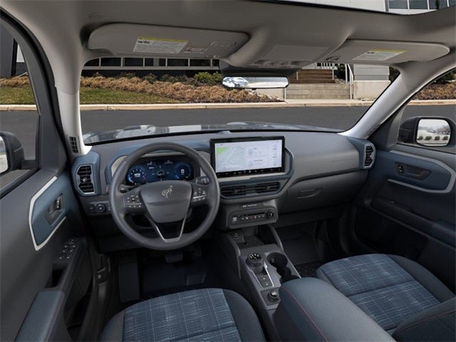 2025 Ford Bronco Sport Heritage Azure Gray Metallic 4-Wheel Disc Brakes, 6 Speakers, ABS brakes, Air Conditioning, Alloy wheels, AM/FM radio: SiriusXM, AM/FM Stereo, Auto High-beam Headlights, Automatic temperature control, Brake assist, Compass, Convenience Package, Delay-off headlights, Driver door bin, Driver vanity mirror, Dual front impact airbags, Dual front side impact airbags, Electronic Stability Control, Emergency communication system: SYNC 4 911 Assist, Equipment Group 250A, Four wheel independent suspension, Front & Rear Floor Liners w/o Carpet Mats, Front anti-roll bar, Front Bucket Seats, Front Center Armrest, Front Driver/Passenger Seat Back Map Pockets, Front License Plate Bracket, Front reading lights, Fully automatic headlights, Heated 8-Way Power Driver's Seat, Heated door mirrors, Illuminated entry, Knee airbag, LED Fog Lamps, Low tire pressure warning, Occupant sensing airbag, Outside temperature display, Overhead airbag, Overhead console, Panic alarm, Passenger door bin, Passenger vanity mirror, Plaid Cloth Front Bucket Seats, Power door mirrors, Power Moonroof, Power steering, Power windows, Premium Wrapped Steering Wheel, Radio data system, Rear anti-roll bar, Rear Parking Sensors, Rear reading lights, Rear seat center armrest, Rear window defroster, Rear window wiper, Remote keyless entry, Security system, SiriusXM, Speed control, Speed-sensing steering, Speed-Sensitive Wipers, Split folding rear seat, Steering wheel mounted audio controls, SYNC 4 w/Enhanced Voice Recognition, Tachometer, Telescoping steering wheel, Tilt steering wheel, Traction control, Trip computer, Universal Garage Door Opener (UGDO), Variably intermittent wipers, Wheels: 17 Oxford White-Painted Aluminum. 4WD 8-Speed Automatic 1.5L EcoBoost