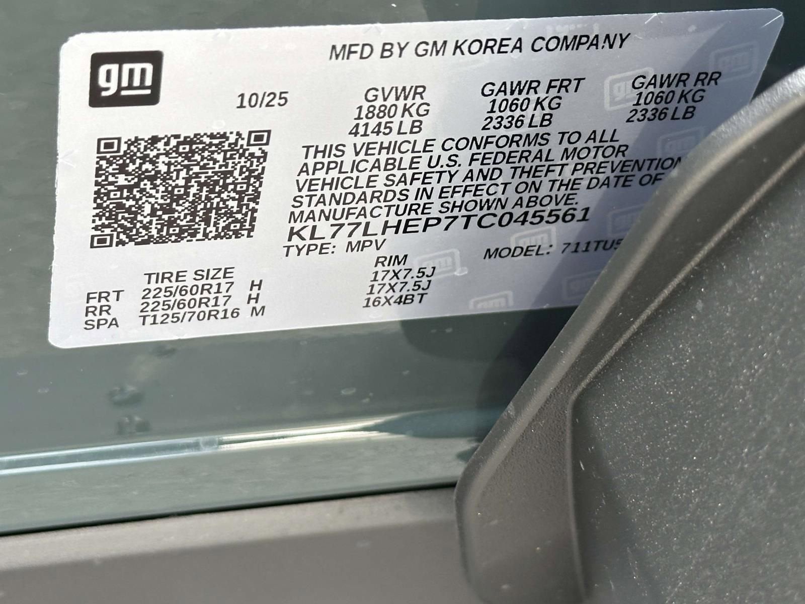 - Tires, 225/60R17 all-season, blackwall