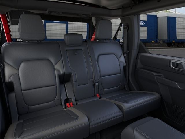 2026 Ford Bronco Outer Banks Ruby Red 18 Bright Machined Aluminum Wheels, 3.73 Axle Ratio, 4-Wheel Disc Brakes, 7 Speakers, ABS brakes, Air Conditioning, Alloy wheels, AM/FM radio: SiriusXM with 360L, AM/FM Stereo, Auto High-beam Headlights, Auto-dimming Rear-View mirror, Automatic temperature control, Brake assist, Compass, Connected Navigation, Delay-off headlights, Driver door bin, Driver vanity mirror, Dual front impact airbags, Dual front side impact airbags, Electronic Stability Control, Emergency communication system: 911 Assist, Equipment Group 312A Mid Package, Exterior Parking Camera Rear, Ford Connectivity Package (1-Year Included), Front anti-roll bar, Front Bucket Seats, Front Center Armrest, Front dual zone A/C, Front fog lights, Front License Plate Bracket, Front reading lights, Front wheel independent suspension, Fully automatic headlights, Heated door mirrors, Heated front seats, Heated Leather-Trimmed/Vinyl Bucket Seats, Heated steering wheel, Illuminated entry, Integrated roll-over protection, Leather Shift Knob, Low tire pressure warning, Navigation system: Connected Navigation, Occupant sensing airbag, Outside temperature display, Overhead airbag, Overhead console, Panic alarm, Passenger door bin, Passenger vanity mirror, Power door mirrors, Power driver seat, Power passenger seat, Power steering, Power windows, Radio data system, Rear seat center armrest, Remote keyless entry, Security system, SiriusXM with 360L, Speed control, Split folding rear seat, Steering wheel mounted audio controls, SYNC 4, Tachometer, Telescoping steering wheel, Tilt steering wheel, Traction control, Trip computer, Variably intermittent wipers, Voltmeter. 4WD 10-Speed Automatic 2.3L EcoBoost I-4