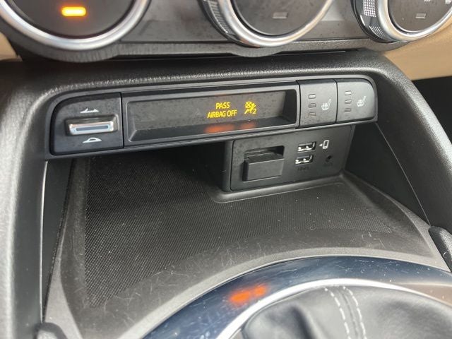 Alloy wheels, Convertible HardTop, Front Bucket Seats, Front Center Armrest, Glass rear window, Heated Front Bucket Seats, Heated front seats, Rain sensing wipers, Variably intermittent wipers, Wheels: 17 Dark Silver Aluminum Alloy, 4-Wheel Disc Brakes, 9 Speakers, ABS brakes, Air Conditioning, AM/FM radio: SiriusXM, AppLink/Apple CarPlay and Android Auto, Auto High-beam Headlights, Auto-dimming door mirrors, Auto-dimming Rear-View mirror, Automatic temperature control, Brake assist, Bumpers: body-color, Convertible roof lining, Convertible roof wind blocker, Cruise Control / Speed control, Delay-off headlights, Driver vanity mirror, Dual front impact airbags, Dual front side impact airbags, Electronic Stability Control, Emergency communication system: MAZDA CONNECT, Exterior Parking Camera Rear, Four wheel independent suspension, Front anti-roll bar, Fully automatic headlights, Garage door transmitter: HomeLink, Heated door mirrors, Illuminated entry, Leather Shift Knob, Leather Upholstery, Low tire pressure warning, MAZDA CONNECT Infotainment System, Navigation System, Occupant sensing airbag, Outside temperature display, Panic alarm, Passenger vanity mirror, Power convertible roof, Power door mirrors, Power steering, Power windows, Radio data system, Radio: Bose Audio System w/AudioPilot, Rear anti-roll bar, Rear window defroster, Remote keyless entry, Soul Red Crystal Paint Charge, Speed-sensing steering, Sport steering wheel, Steering wheel mounted audio controls, Tachometer, Telescoping steering wheel, Tilt steering wheel, Traction control, and Trip computer