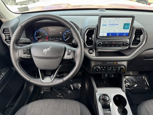 2023 Ford Bronco Sport Hot Pepper Red Tinted Clearcoat Big Bend Ford Blue Certified Certified, 3.80 Axle Ratio, 4-Wheel Disc Brakes, 4G LTE Wi-Fi Hotspot Credit, 6 Speakers, ABS brakes, Air Conditioning, Alloy wheels, AM/FM radio: SiriusXM, AM/FM Stereo, Auto High-beam Headlights, Automatic temperature control, Brake assist, Compass, Convenience Package, Delay-off headlights, Driver door bin, Driver vanity mirror, Dual front impact airbags, Dual front side impact airbags, Electronic Stability Control, Emergency communication system: SYNC 3 911 Assist, Equipment Group 200A, Four wheel independent suspension, Front & Rear Floor Liners, Front anti-roll bar, Front Bucket Seats, Front Center Armrest, Front Driver & Passenger Seatback Zipper Pockets, Front reading lights, Fully automatic headlights, Heated door mirrors, Heated Front Bucket Seats, Illuminated entry, Intelligent Access (Lock/Unlock), Knee airbag, Leather-Wrapped Steering Wheel, LED Fog Lamps, Low tire pressure warning, Occupant sensing airbag, Outside temperature display, Overhead airbag, Overhead console, Panic alarm, Passenger door bin, Passenger vanity mirror, Power door mirrors, Power steering, Power windows, Radio data system, Rear anti-roll bar, Rear Parking Sensors, Rear reading lights, Rear seat center armrest, Rear window defroster, Rear window wiper, Remote keyless entry, Security system, SiriusXM, Speed control, Speed-sensing steering, Speed-Sensitive Wipers, Split folding rear seat, Steering wheel mounted audio controls, SYNC 3 Communications & Entertainment System, SYNC 3/Apple CarPlay/Android Auto, Tachometer, Telescoping steering wheel, Tilt steering wheel, Traction control, Trip computer, Unique Cloth Front Bucket Seats, Universal Garage Door Opener (UGDO), Variably intermittent wipers, Wheels: 17 Carbonized Gray-Painted Aluminum, Wireless Charging Pad. Certified. 4WD 8-Speed Automatic 1.5L EcoBoost