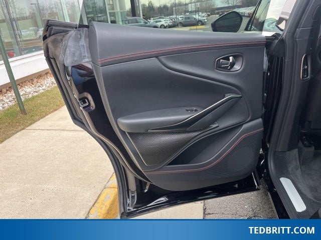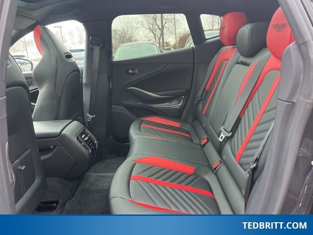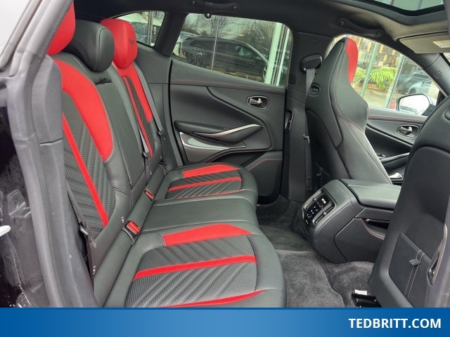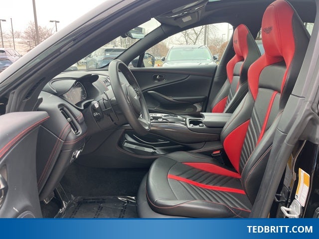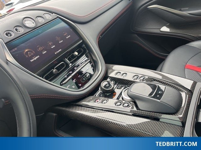 Rain sensing wipers, Variably intermittent wipers, 14 Speakers, 16-Way Electric Front Seats w/Memory, 4-Wheel Disc Brakes, ABS brakes, Adaptive suspension, Air Conditioning, Alloy wheels, AM/FM radio: SiriusXM, Apple CarPlay, Auto High-beam Headlights, Auto-dimming door mirrors, Auto-dimming Rear-View mirror, Auto-leveling suspension, Automatic temperature control, Axle Ratio: TBD, Brake assist, Bumpers: body-color, Ceramic disc brakes: front and rear, Compass, Cruise Control / Speed control, Delay-off headlights, Door auto-latch, Driver door bin, Driver vanity mirror, Dual front impact airbags, Dual front side impact airbags, Electronic Stability Control, Four wheel independent suspension, Front anti-roll bar, Front Bucket Seats, Front Center Armrest, Front dual zone A/C, Front reading lights, Fully automatic headlights, Genuine wood console insert, Heated door mirrors, Heated front seats, Heated rear seats, Heated Seats, Illuminated entry, Knee airbag, Leather steering wheel, Low tire pressure warning, Memory seat, Micro-Perforated Leather/Alcantara Seat Trim, Navigation System, Occupant sensing airbag, Outside temperature display, Overhead airbag, Panic alarm, Passenger door bin, Passenger vanity mirror, Power door mirrors, Power driver seat, Power Liftgate, Power passenger seat, Power steering, Power windows, Radio data system, Radio: Aston Martin Premium Audio System, Rear air conditioning, Rear anti-roll bar, Rear fog lights, Rear reading lights, Rear seat center armrest, Rear side impact airbag, Rear window defroster, Remote keyless entry, SDARS SiriusXM Radio, Security System, Speed-sensing steering, Split folding rear seat, Spoiler, Sport steering wheel, Sports Seats, Steering wheel memory, Steering wheel mounted audio controls, Tachometer, Telescoping steering wheel, Tilt steering wheel, Traction control, Trip computer, Turn signal indicator mirrors, and Wheels: 22 Sport Gloss Black Diamond Turned