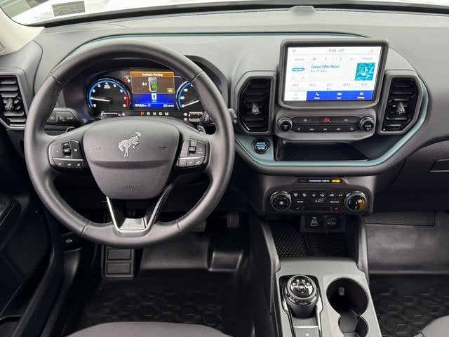 2024 Ford Bronco Sport Oxford White Badlands Ford Blue Certified Certified, 3.80 Axle Ratio, 4-Wheel Disc Brakes, 6 Speakers, ABS brakes, Air Conditioning, Alloy wheels, AM/FM radio: SiriusXM, AM/FM Stereo, Auto High-beam Headlights, Automatic temperature control, Brake assist, Compass, Delay-off headlights, Driver door bin, Driver vanity mirror, Dual front impact airbags, Dual front side impact airbags, Electronic Stability Control, Emergency communication system: SYNC 3 911 Assist, Equipment Group 400A, Four wheel independent suspension, Front anti-roll bar, Front Bucket Seats, Front Center Armrest, Front fog lights, Front reading lights, Fully automatic headlights, Heated door mirrors, Illuminated entry, Knee airbag, Low tire pressure warning, Occupant sensing airbag, Outside temperature display, Overhead airbag, Overhead console, Panic alarm, Passenger door bin, Passenger vanity mirror, Power door mirrors, Power driver seat, Power steering, Power windows, Radio data system, Rear anti-roll bar, Rear reading lights, Rear seat center armrest, Rear window defroster, Rear window wiper, Remote keyless entry, Security system, SiriusXM, Speed control, Speed-sensing steering, Speed-Sensitive Wipers, Split folding rear seat, Steering wheel mounted audio controls, SYNC 3 Communications & Entertainment System, Tachometer, Telescoping steering wheel, Tilt steering wheel, Traction control, Trip computer, Unique Style Cloth Sport Contour Bucket Seats, Variably intermittent wipers, Wheels: 17 Carbonized Gray-Painted Aluminum. CARFAX One-Owner. Clean CARFAX. Certified. 4WD 8-Speed Automatic EcoBoost 2.0L I4 GTDi DOHC Turbocharged VCT