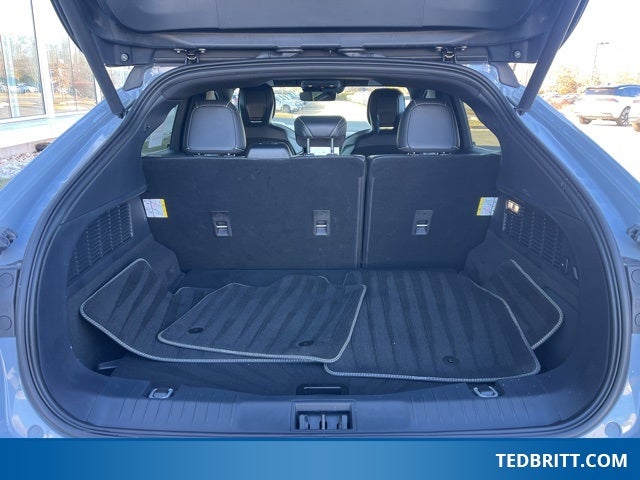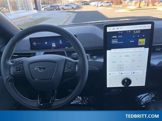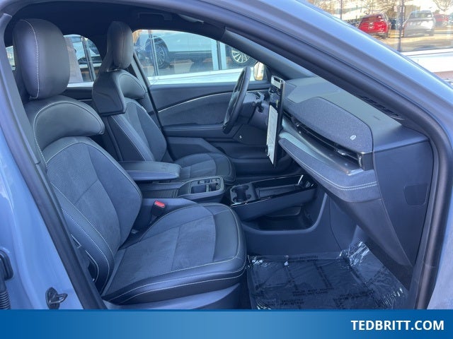 Equipment Group 400A Standard Package, Ford Connectivity Package (One-Time Purchase) (Cellular Connectivity for Audio/Video Streaming), Ford Blue Advantage: Blue Certified Certified, Auto High-beam Headlights, Delay-off headlights, Fully automatic headlights, Navigation system: Connected Navigation, Panoramic Fixed-Glass Roof, Power Liftgate, Rain sensing wipers, Rear window wiper, Speed-Sensitive Wipers, Variably intermittent wipers, Wheels: 20 Monochromatic High Gloss Black-Painted, 10 Speakers, 4-Wheel Disc Brakes, ABS brakes, Adaptive suspension, Air Conditioning, Alloy wheels, AM/FM radio: SiriusXM with 360L, Apple CarPlay/Android Auto, Auto-dimming Rear-View mirror, Automatic temperature control, Brake assist, Bumpers: body-color, Compass, Cruise Control / Speed control, Driver door bin, Driver vanity mirror, Dual front impact airbags, Dual front side impact airbags, Electronic Stability Control, Emergency communication system: 911 Assist, Exterior Parking Camera Rear, Four wheel independent suspension, Front anti-roll bar, Front Bucket Seats, Front Center Armrest, Front dual zone A/C, Front reading lights, Garage door transmitter, Heated door mirrors, Heated front seats, Heated Perforated ActiveX Performance Seats, Heated steering wheel, Hood & Decklid Stripe/Door Graphics Delete, Illuminated entry, Internet access capable: FordPass Connect, Knee airbag, Low tire pressure warning, Memory seat, Mobile Power Cord (120V/240V), Mustang Mach-E GT Performance Upgrade, Occupant sensing airbag, Outside temperature display, Overhead airbag, Overhead console, Panic alarm, Passenger door bin, Passenger vanity mirror, Power door mirrors, Power driver seat, Power passenger seat, Power steering, Power windows, Radio data system, Radio: B&O Sound System by Bang & Olufsen, Rear anti-roll bar, Rear seat center armrest, Rear side impact airbag, Rear window defroster, Remote keyless entry, Security System, SiriusXM w/360L, Speed-sensing steering, Split folding rear seat, Spoiler, Steering wheel mounted audio controls, SYNC 4A w/Enhanced Voice Recognition, Telescoping steering wheel, Tilt steering wheel, Traction control, Trip computer, and Turn signal indicator mirrors